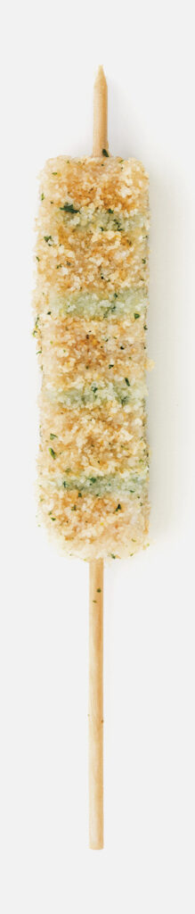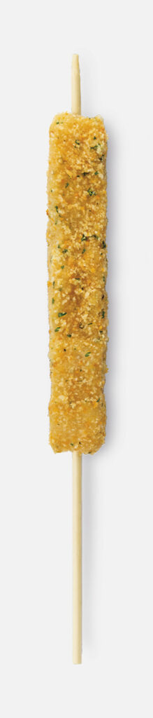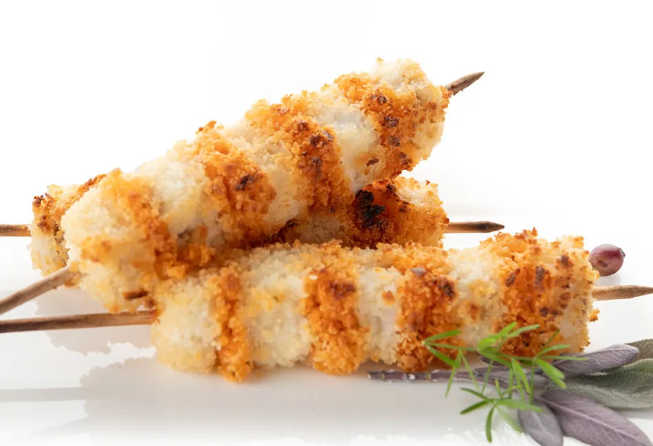 Prepared with squid fillet, its succulent texture and the tasty breading have made it a great success. Each skewer weighs about 33 grams and can be cooked quickly in the oven or in the fryer. This makes it a versatile product and suitable for many service occasions.